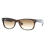 Ray Ban Rb2132 New Wayfarer Sunglasses : Light tortoise plastic frame, Brown gradient tempered glass lenses, rectangular shaped. Product comes with an original Ray Ban carrying case, cleaning cloth and manufacturer's booklet.